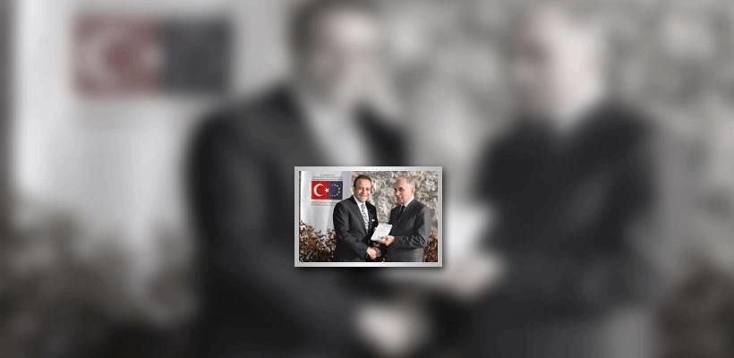 Bağış, konuşmasının ardından Türkiye Delegasyonu Başkanı Büyükelçi Marc Pierini'ye kitabı hediye etti.