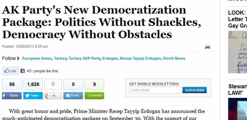 The article titled "Politics Without Shackles, Democracy Without Obstacles" written by Minister for EU Affairs and Chief Negotiator Egemen Bagis was published in Huffington Post.