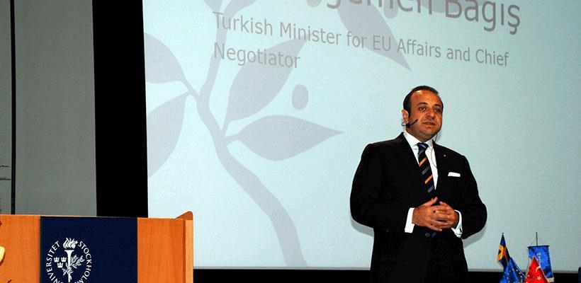 Yılın ilk resmi ziyaretini Türkiye’nin AB sürecindeki en büyük destekçilerinden İsveç’e yapan Avrupa Birliği Bakanı ve Başmüzakereci Egemen Bağış, Stockholm Üniversitesi’nde “Türkiye – AB İlişkilerinin Geleceği” konulu bir konferans verdi.