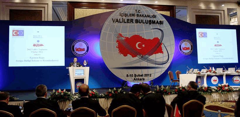 İçişleri Bakanlığı tarafından Ankara'da düzenlenen Valiler Toplantısına katılan Bağış, son iki yılda valiliklerin Avrupa Birliği ile ilgili gerçekleştirdikleri faaliyetleri ve başarı öykülerini valilerle birlikte gözden geçirerek, valilerin ileriye yönelik değerlendirmelerini dinledi ve Bakanlığın 2012 yılı projelerini valilerle paylaştı.